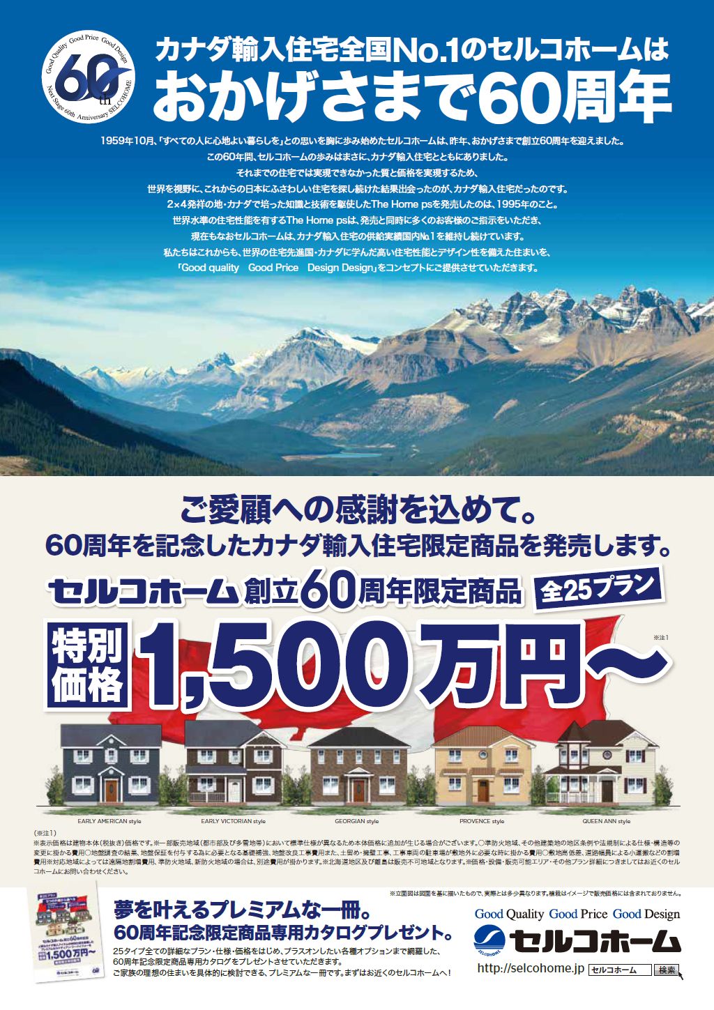 注文輸入住宅のセルコホーム山梨富士です。 おかげさまでセルコホームは創立60周年。創立記念商品を企画いたしました。
