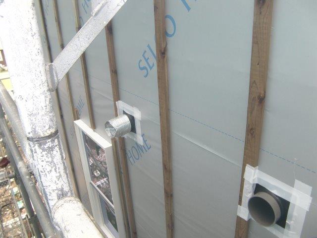 外周部のダクト配管部は、気密テープで処理します。 |