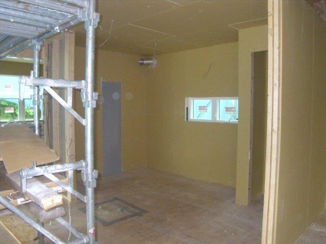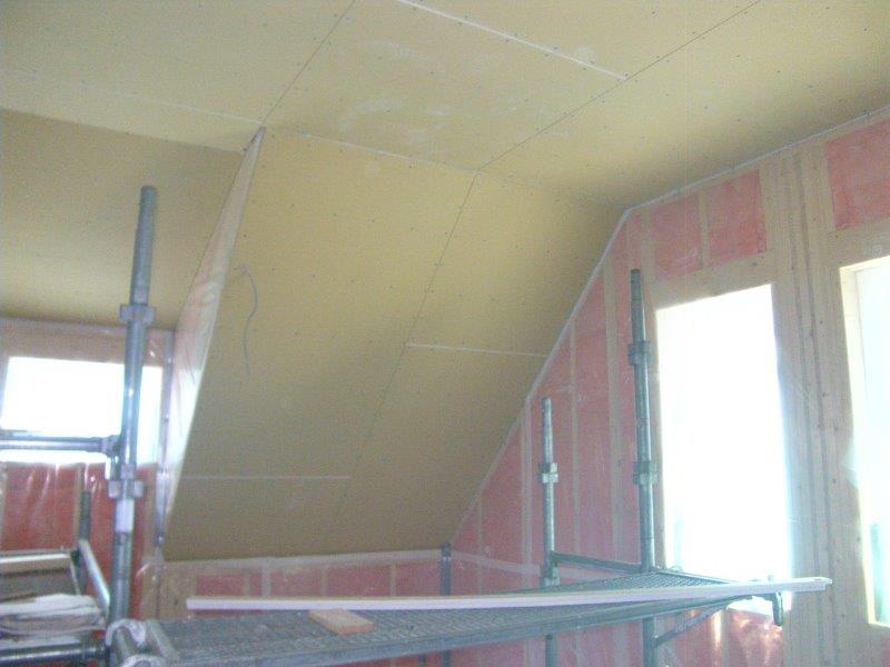 外周部に面する壁の入隅にはコーナービートを取り付けます。 コンセントボックス のまわりはテーピング処理をして気密性を高めます。