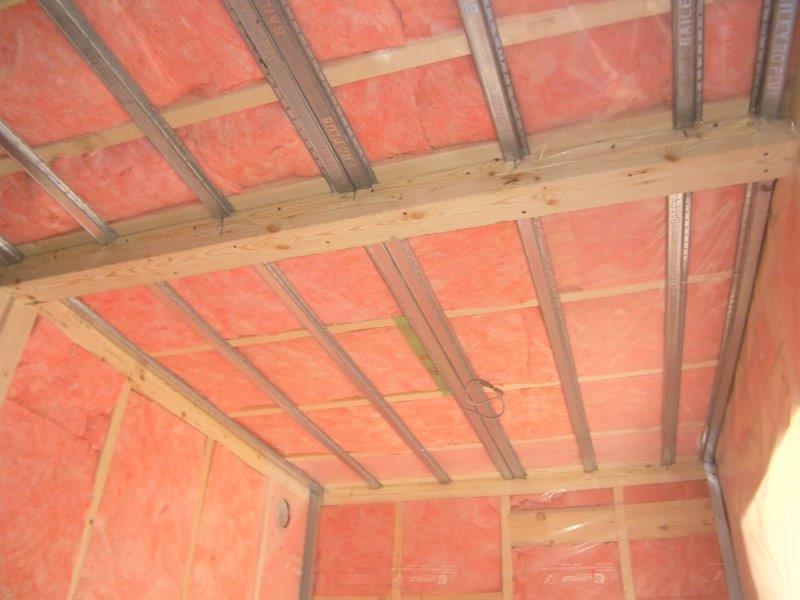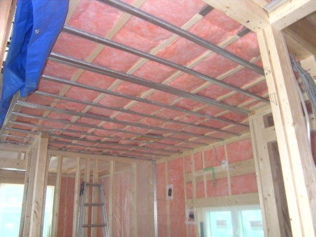 1階の天井下地には、サウンドバーを使用しています。間隔は303mmです。