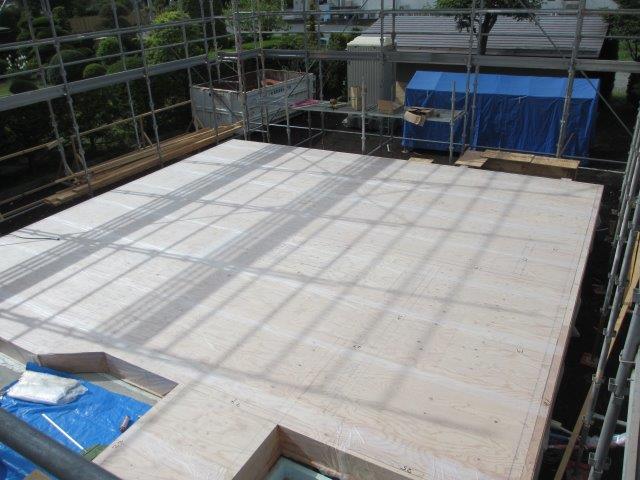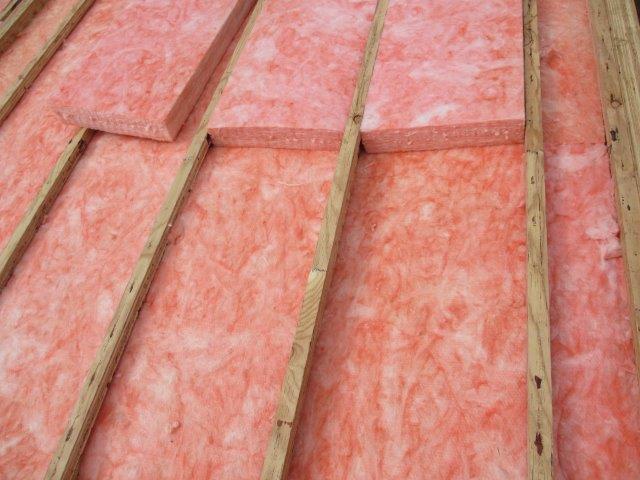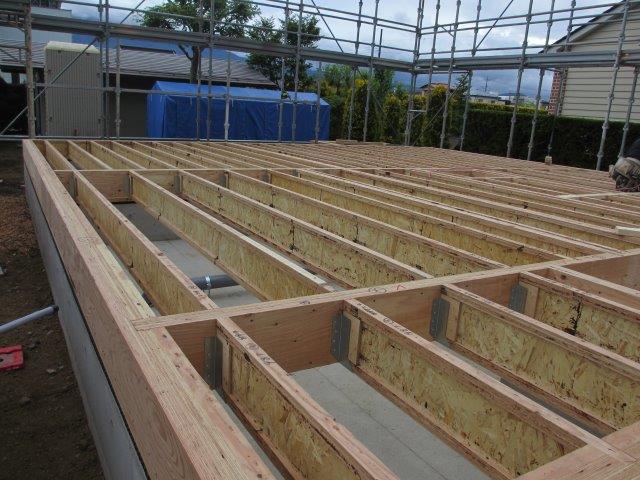 セルコホームの標準仕様通り、1階の根太間に高性能グラスウール32K相当90㎜+140㎜を敷き込んでいます。