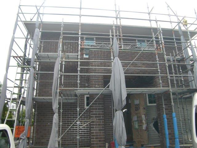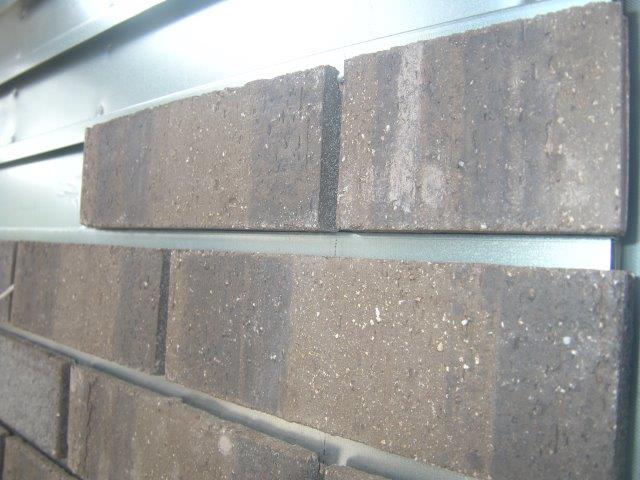 玄関側の外装材はレンガです。金属下地(ブリキットシステム専用レール)を施工中です。