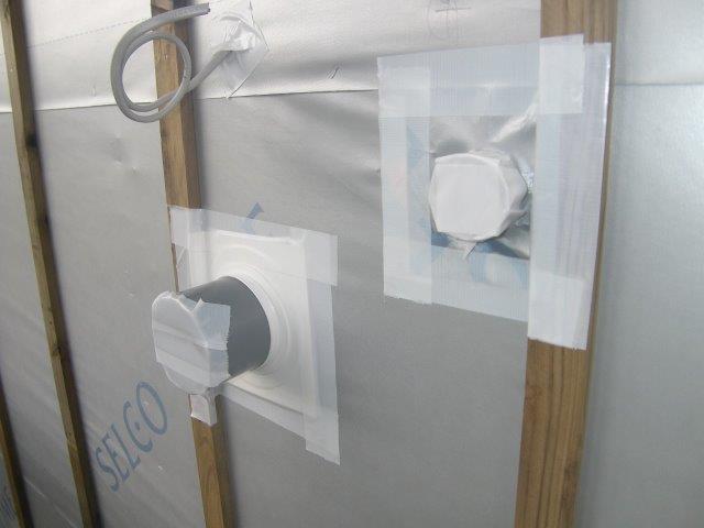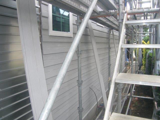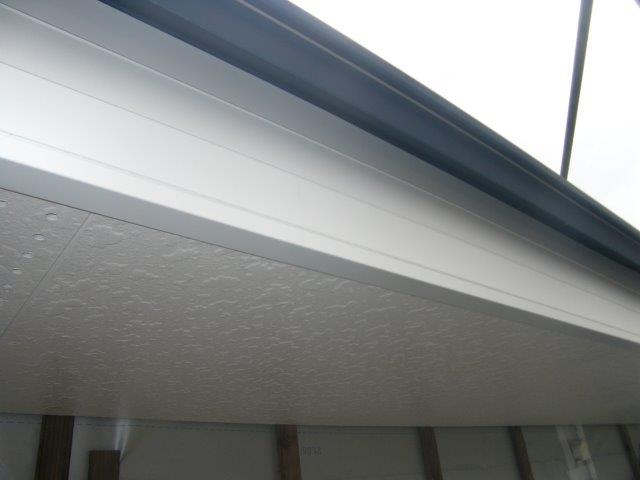 軒天はアスノンエンボスの塗装品です。小屋裏の換気のため一部有孔板になっています。 通気胴縁は18㎜です。