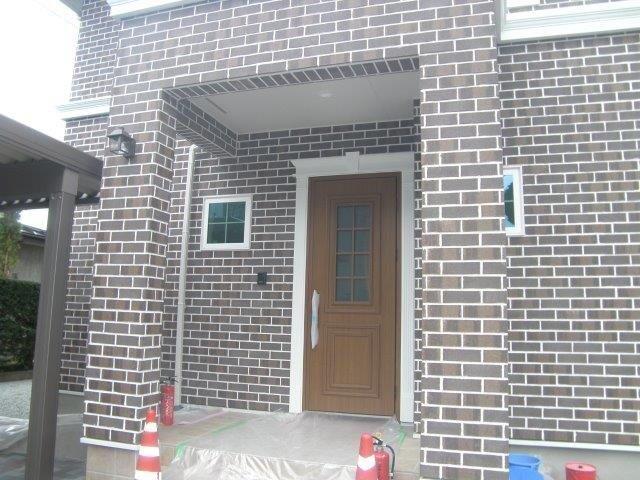 玄関ポーチの上はセルコホームオリジナルのレンガ仕上げのパラペットになっています。