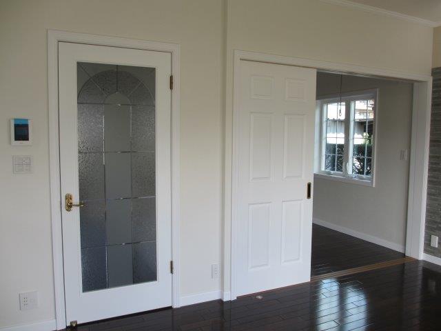 玄関を入ると白を基調とした内装に階段の手摺(LJスミスの手摺)がアクセントになっています。