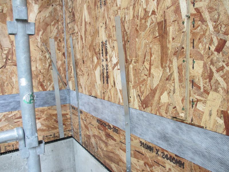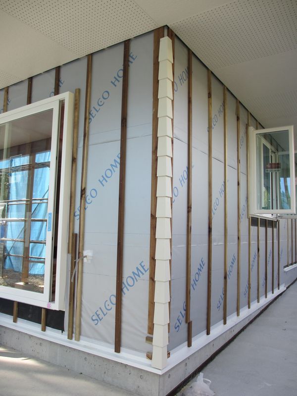 外壁は、構造用合板の上に防湿シートを張り、通気工法の胴縁を取り付け、外壁材を張っていきます。この通気工法を採用することで外壁からの熱の影響を受けにくくし、冷暖房費の低減も図っています。