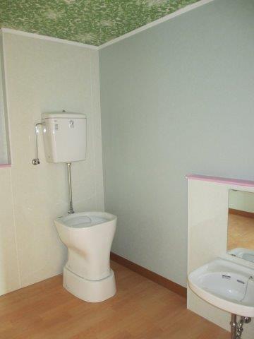幼児室A ポイントのクロスは黄色です。LED照明・24時間換気も取り付けされました。引き続きエアコンも取り付けられます。